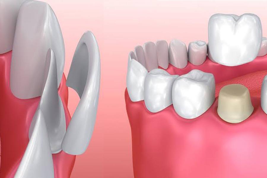 Dental veneers and crowns are thin shells of porcelain or ceramic laminates, which are wafer-thin and custom-made shells of tooth-colored materials designed to cover the front of the teeth, providing a natural, attractive look. These shells are fixed to the front of the teeth changing their color, shape, size, or length.