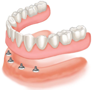 - The custom-made dentures are secured into the hardware that is attached to the implant.